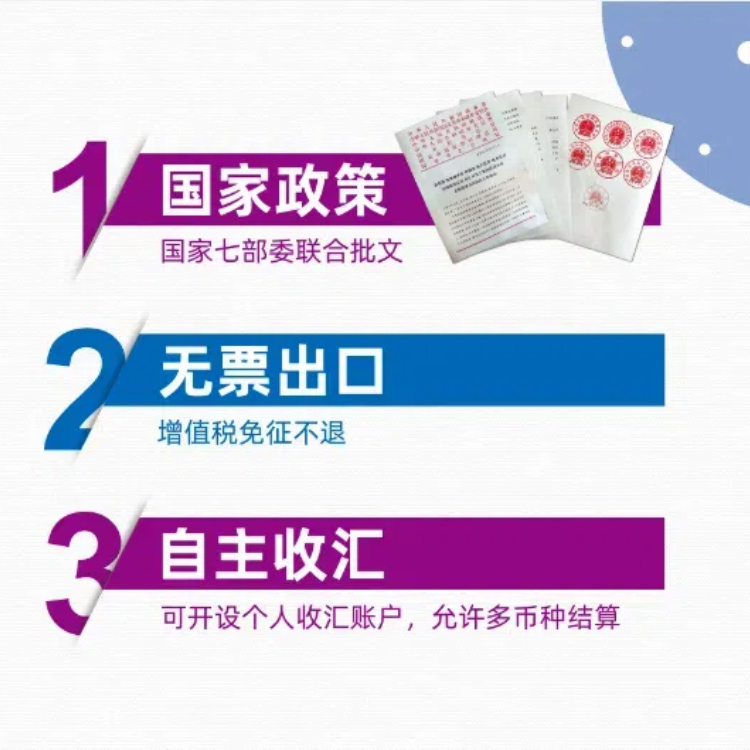 簡(jiǎn)單說(shuō),它是國(guó)家專門為中小外貿(mào)企業(yè)、跨境電商賣家、外貿(mào)SOHO設(shè)計(jì)的出口以及外貿(mào)收款政策,主要解決“無(wú)票出口”“陽(yáng)光收結(jié)匯”“簡(jiǎn)便通關(guān)”、核定征收完稅等痛點(diǎn)。